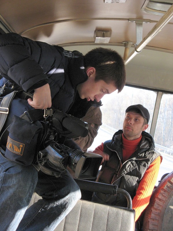 режиссер точно знает, где лучшая точка для съемки. и безжалостно гоняет оператора по салону автобуса.