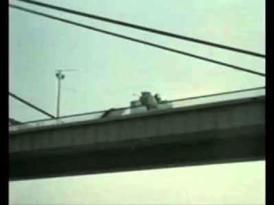 Падение с Московского моста (г.Киев, высота над водой более 20 метров). Исполнитель трюка - Анатолий Тарасенко.